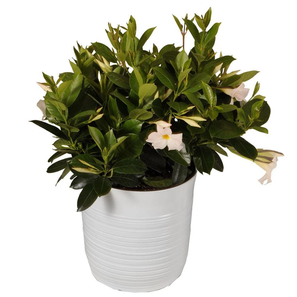 The Dipladenia could be called the perfect flowering plant since it meets all of the following in a checklist. It is not too big nor too small, has lots of flowers, is easy to transplant and works well inside pots, hanging baskets and in the ground. Bring color to your home garden with our selection of beautiful dipladenias available only in spring time. Great for yourself or as a gift. This plant is shipped in a premium 10 in. Dia polypropylene pot and to prevent water spillage the pot does not contain holes.