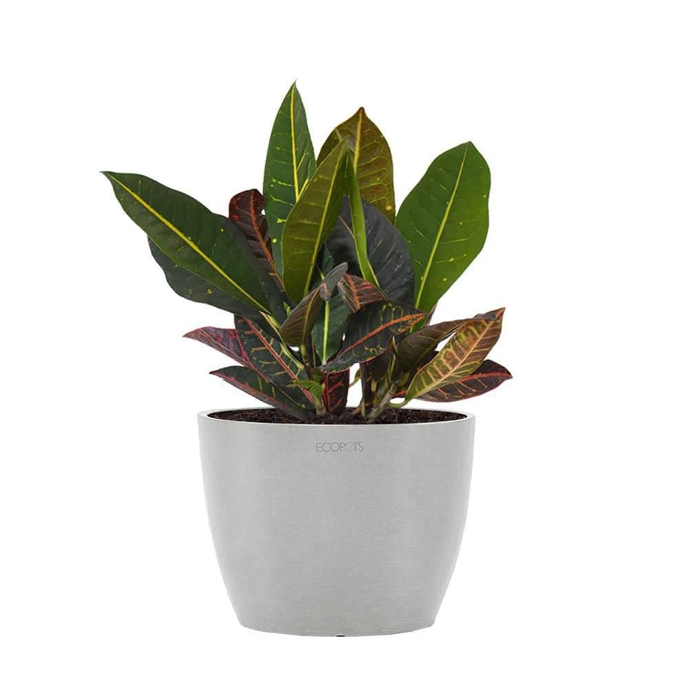Grown by United Nursery, the Croton Petra is native to South Asia and the Western Pacific Islands. This woody-based perennial can grow to 5 ft. tall to 6 ft. tall but will make an excellent container plant to any sun drenched patio. with an array of colors in greens, yellows, reds and orange, this plant is sure to attract attention in any decor. The plant is perfectly paired with a beautifully designed decorative pot made from 100% recycled plastics and natural minerals and hand finished for a distinctive natural look. The Croton Petra can tolerate full to medium sun and prefers soil that drains well.