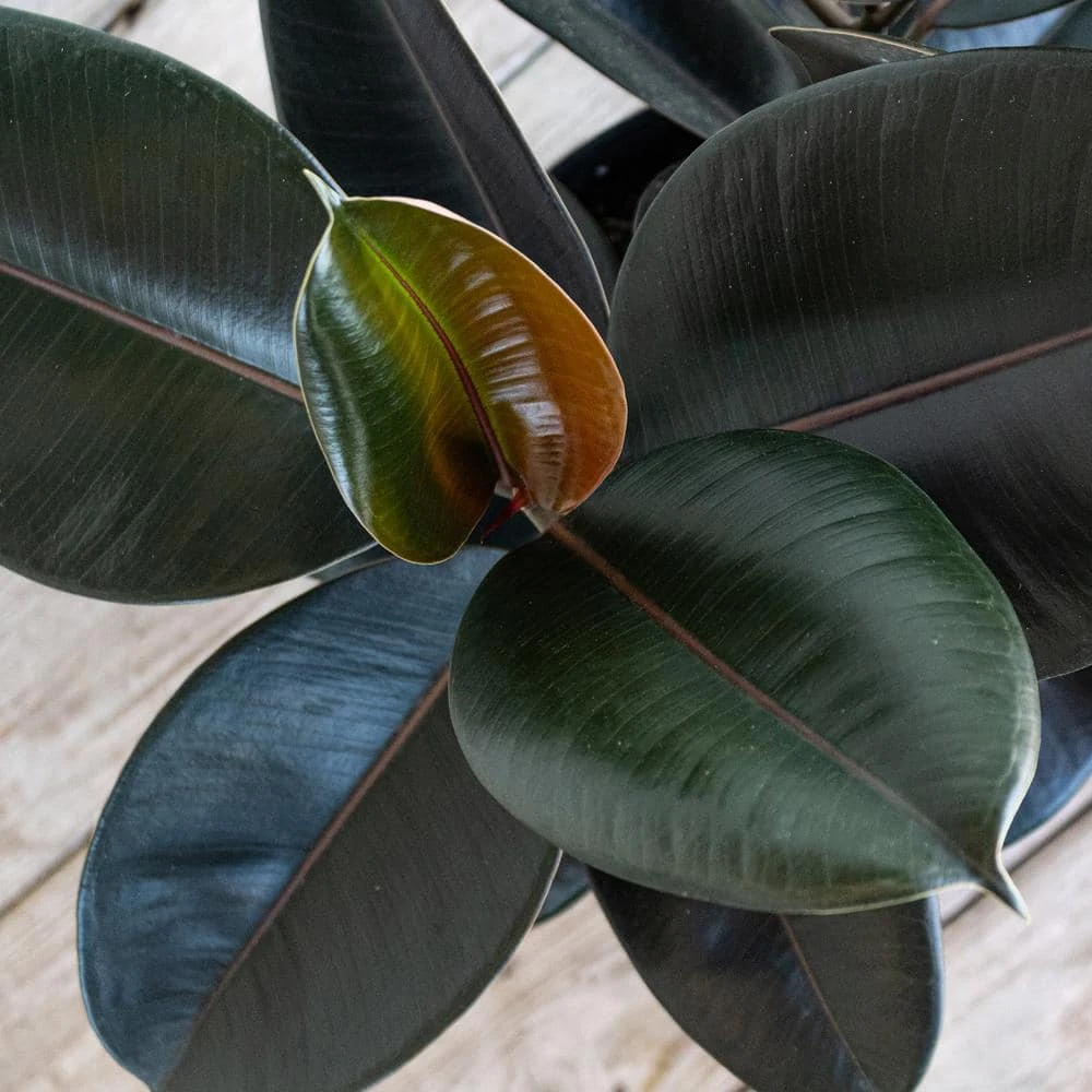 - Tropical live plant care instructions: if the soil is moist your plant will be perfectly fine, direct sunlight will produce the darkest burgundy color on the leaves while in low indoor light the rubber fig leaves will fade to a green shade, this plant needs watering only when the soil becomes dry to the touch, pour water into the top of the plant pot and let it run out the bottom to soak the roots