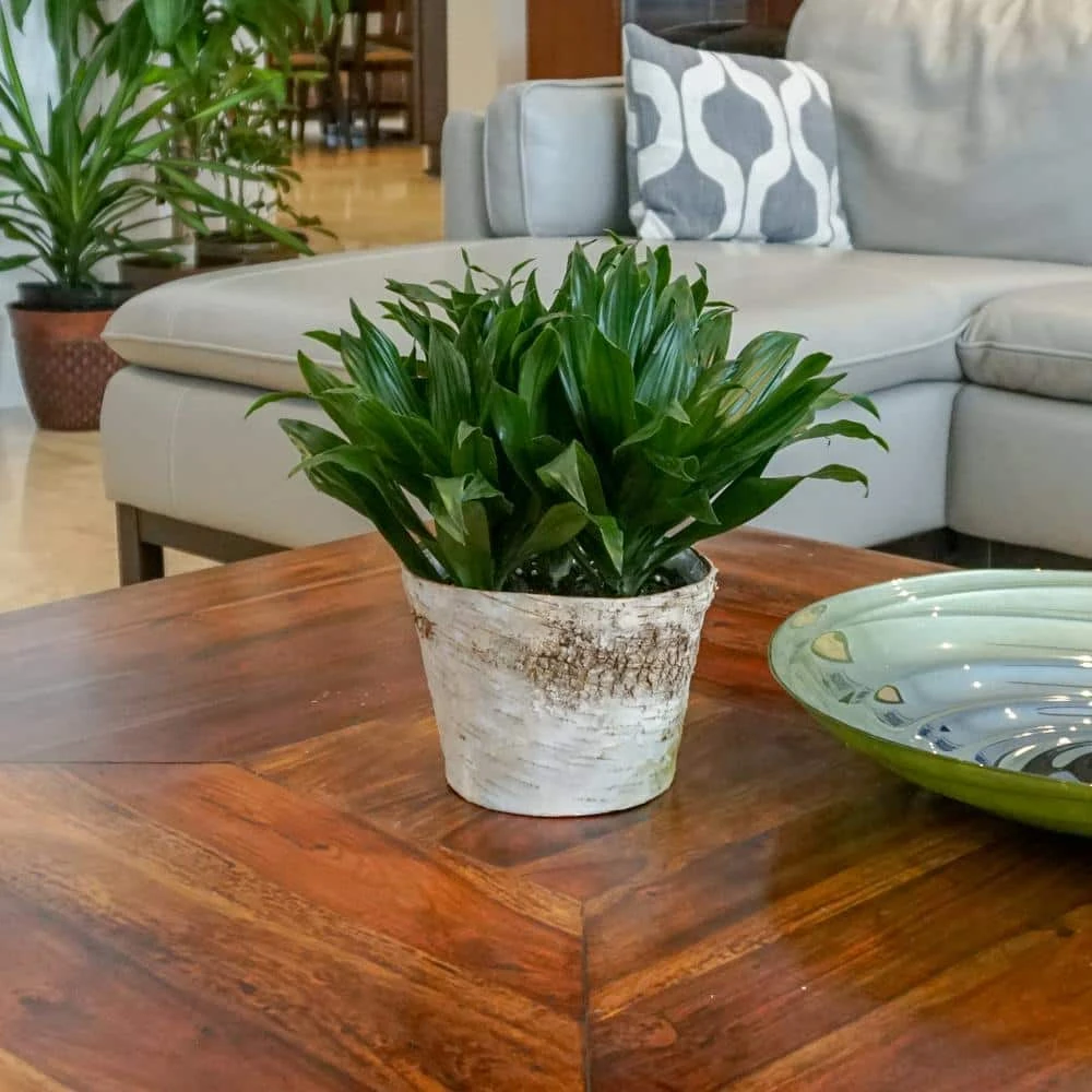 Grown by United Nursery, the Dracaena Janet Craig Compacta, or Madagascar Dragon plant as its sometimes called, is an easy-care, eye-catching and durable indoor plant well suited for home or office. This plant is very unique because of its rich green leaves clumped together into thick lush foliage 3 in. L – 4 in. L. This widely-popular plant is slow growing and makes the perfect accent plant for any compact space.