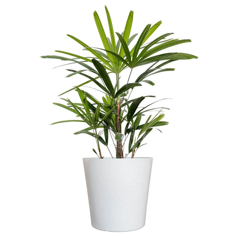 The Lady Palm, or Rhapis excelsa, is a botanical treasure originating from the lush forests of Southeast Asia and Southern China. Its visual allure is characterized by delicate, deep green fronds that resemble a lady’s fan, earning it its name. With their slender, graceful appearance, these fronds are arranged in multiple tiers, creating a captivating layered effect. Caring for the Lady Palm is a breeze: it thrives in low to moderate indirect light, making it an ideal choice for indoor settings. Water it when the top inch of the soil feels dry, allowing for well-draining soil to prevent overwatering. Known for its air-purifying qualities, the Lady Palm not only beautifies your space but also purifies the air, making it a truly elegant addition to any room.