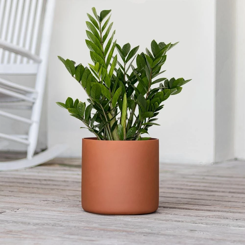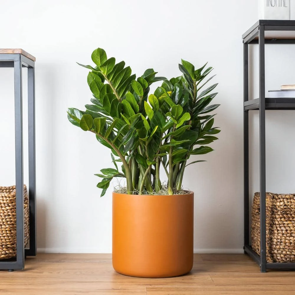The ZZ Plant, originating from the arid regions of Eastern Africa, is a resilient and visually striking addition to any space. With glossy, dark green, feather-like leaves that gracefully rise from thick, succulent stems, this plant exudes an air of elegance and modernity. Its beauty is matched by its low-maintenance nature, thriving in a variety of lighting conditions, from low to bright, indirect light, and requiring minimal watering – simply allow the soil to dry out between watering, typically every 2-weeks to 3-weeks. Ideal for those with busy lifestyles or new to plant care, the ZZ Plant’s adaptability and forgiving nature make it a standout choice. This hardy plant prefers well-draining soil and a stable temperature range between 65°F to 75°F (18°C to 24°C), and its ability to endure periods of neglect underscores its reputation as a symbol of both resilience and elegance.