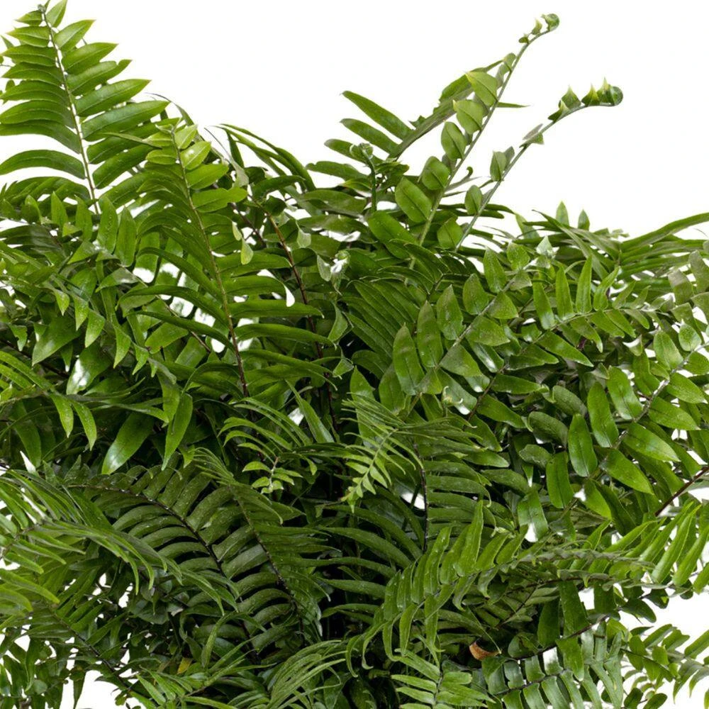 Grown by United Nursery, The Macho fern is a tough and durable Fern that can out-grow its much smaller companions, the Boston or Kimberly Ferns. Macho ferns have long wide arching branches with dark green fronds. Because their growth habit is large and full, the Macho Fern is perfect for a shady patio or large covered outdoor living space. The Macho Fern enjoys shady areas away from direct sunlight and water to keep the soil moist but not soggy.