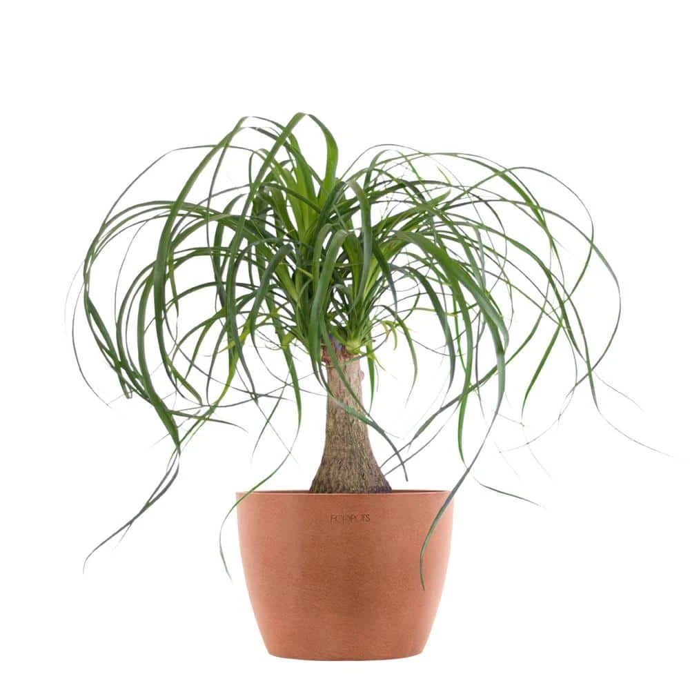 The Beaucarnea recurvata or more commonly known as the Ponytail palm, is a unique looking, long-lasting indoor plant that’s perfect for beginners and expert plant lovers alike due to its low maintenance and easy care needs. Despite its palm like appearance and name, the Ponytail palm is not a true palm, it is closely related to desert plants in the Agave and Yucca genus, the Ponytail palm has a exclusive feature within the swollen base of its trunk, which is where it stores a reserve of water making it highly tolerant to drought. Clusters of long strap-like leaves arch and droop gracefully from the trunk giving the impression of a palm. No 2 specimens are alike ensuring that your Ponytail palm is 1 of a kind. If you’re looking for a plant that will make a statement and add green color in your house or office with low maintenance and easy care, then the Ponytail palm is a great choice, the plant is perfectly paired with a beautifully designed decorative pot made from 100% recycled plastics and natural minerals and hand finished for a distinctive natural look. Indoor house plants are proven to be excellent air purifiers which help decrease stress and anxiety while stimulating creativity and productivity. Great for yourself or as a gift.