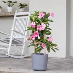 - Maintenance – as the Mandevilla grow throughout the season, they will require some type of support to keep them from sprawling haphazardly across the ground, tying the vines to a pergola, trellis or other structure with plant ties or string allows for an attractive display of their large flowers, pinching back the vines periodically through the early growing season encourages lateral branching, which results in a thicker, bushier plant, deadheading flowers when their color fades keeps the vines looking fresh while encouraging future blooms