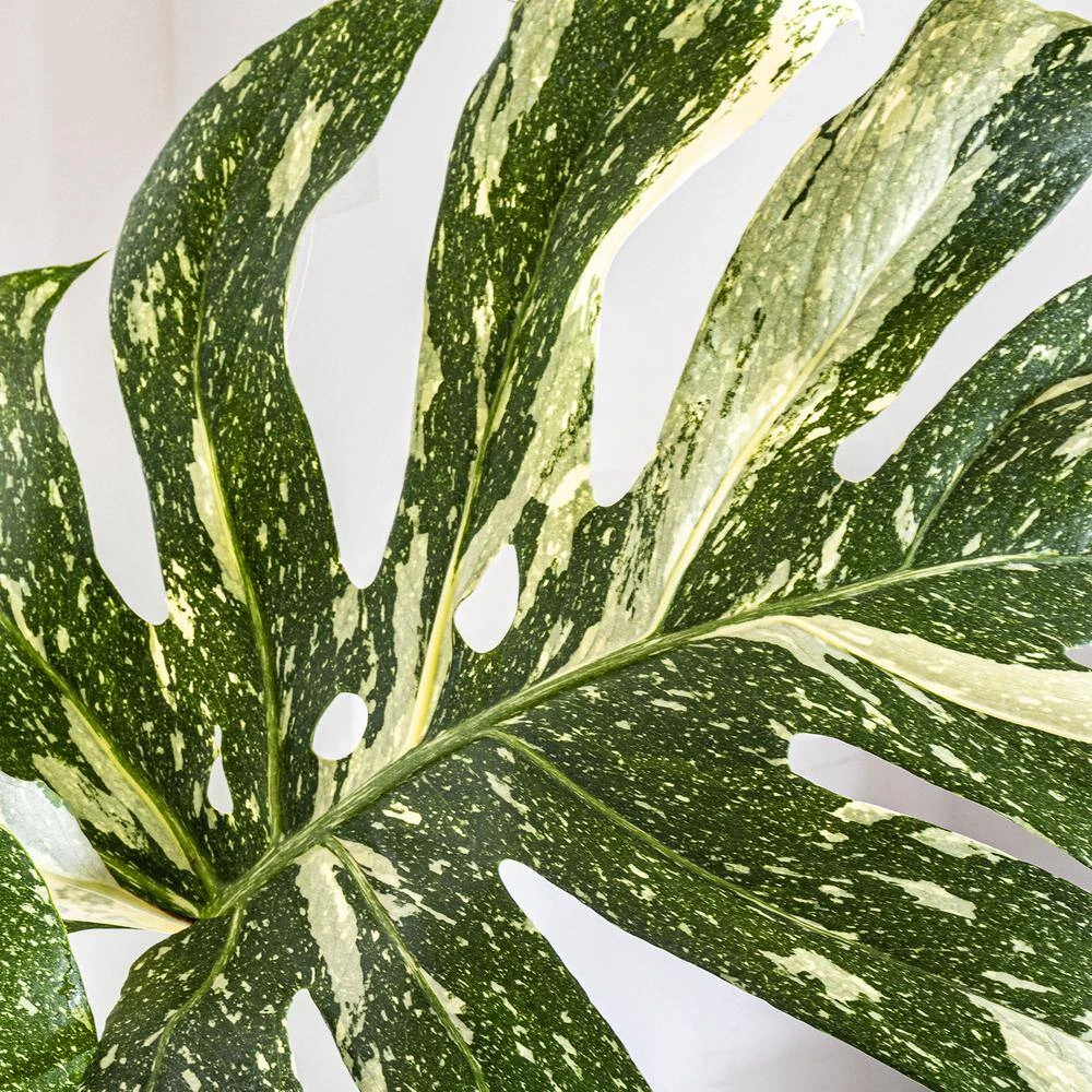 The Monstera Thai Constellation, scientifically known as Monstera deliciosa ‘Thai Constellation’, is a striking cultivar of the popular Monstera deliciosa plant. Originating from the tropical rainforests of Central and South America, the Monstera Thai Constellation captivates with its unique variegated foliage featuring creamy-white splashes and patches on dark green leaves. Care for this stunning plant involves providing bright, indirect light and well-draining soil to thrive. Keep the soil evenly moist but avoid waterlogging to prevent root rot. The Monstera Thai Constellation’s uniqueness lies in its exquisite variegation patterns, which make it a prized addition to any indoor plant collection. Its large, glossy leaves add a touch of tropical elegance to interior spaces, making it a standout feature in any room. With proper care and attention, the Monstera Thai Constellation is sure to become a cherished centerpiece in your home or office.